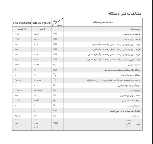 • حداکثر دمای آب مدار گرمایش: 90 درجه سانتی گراد